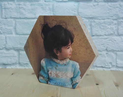 3 יחידות תמונה על בלוק עץ בצורת משושה 20 ס"מ