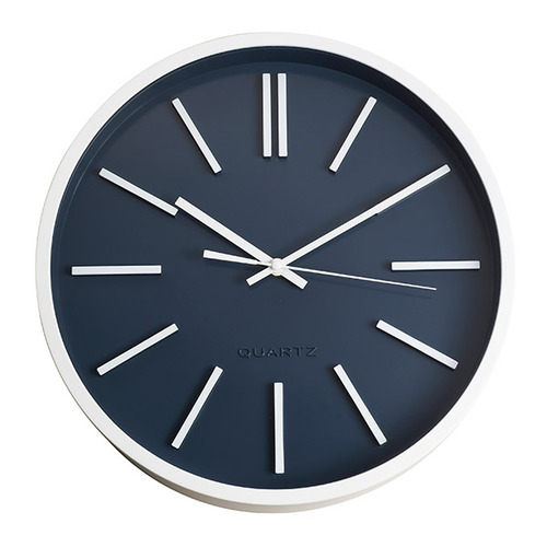 שעון קיר מסגרת לבנה, רקע כחול כהה